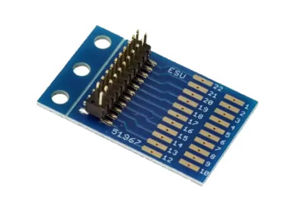 De ESU 51967 aansluitadapter is ontworpen voor LokSound- en LokPilot-decoders met 21MTC-aansluitingen. Deze adapter zorgt voor een stabiele verbinding en is eenvoudig te installeren in uw modeltreinen.