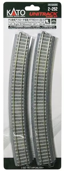 Kato 2-252 H0 Gleis gebogen R790mm 22,5° Übergangsgleis mit Betonschwellen (2x L & 2x R)