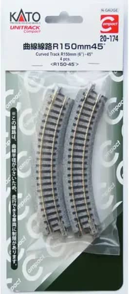 Kato 20-174 N Gleis gebogen R150mm 45° (4 Stk.)