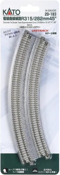 Kato 20-183 N Doppelgleis gebogen R315/282mm 45° überhöht mit Betonschwellen (2 Stk.)