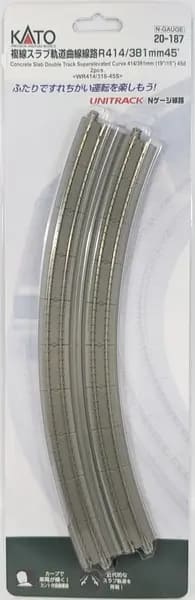 Kato 20-187 N Doppelgleis gebogen R414/381mm 45° überhöht mit Plattenfahrbahn (2 Stk.)