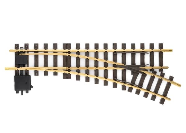 Gerades Gleis 440 mm. Abzweigendes Gleis rechts R3, 22,5°. Der Handweichenantrieb lässt sich rechts oder links an der Weiche montieren. Nachrüstbar mit dem elektrischen Weichenantrieb 12010. Nur für Erwachsene.