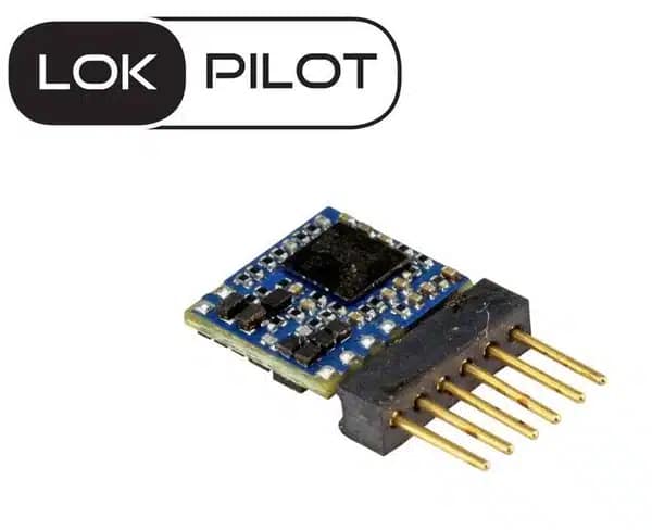 Direct aangesloten 6-pin LokPilot 5 Micro, geschikt voor compacte modeltreinen.