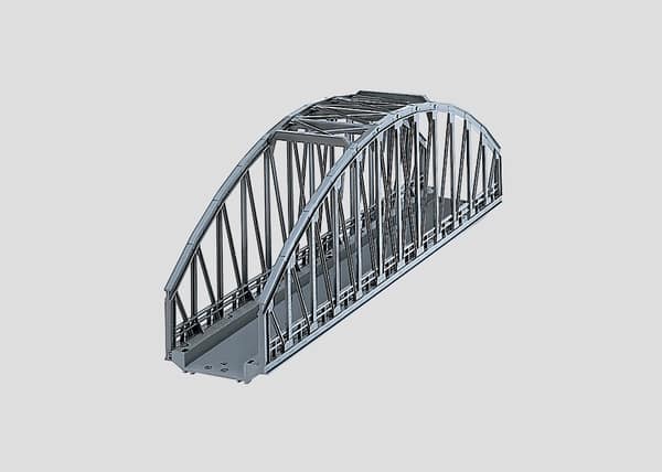 Länge 360 mm. Breite 64 mm. Höhe 117 mm. Zur Aufnahme von geraden C-Gleisen. 1 Bogenbrücke entspricht den Gleisen 24188 + 24172. Als Vorflutbrücke ist 74620 geeignet. Nur für Erwachsene.