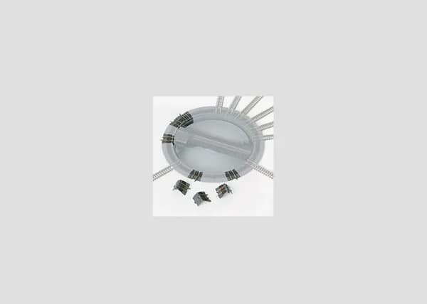 8 Gleisanschluss-Randsegmente zum Aufstecken auf den Drehscheibenrand. Mit 2 Erweiterungssätzen kann die Drehscheibe bis auf 24 Gleisanschlüsse ausgebaut werden.Farblich passend zur Drehscheibe 89982.