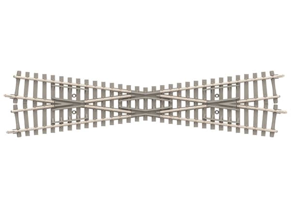 Die 15°-Kreuzung ist so konstruiert, dass die beiden sich kreuzenden Gleise elektrisch vollständig voneinander getrennt sind. Diese Kreuzung kann deshalbbeliebig eingesetzt werden, auch bei Schleifenstrecken und bei sich kreuzenden Strecken mit getrennten Stromkreisen. Nur für Erwachsene.