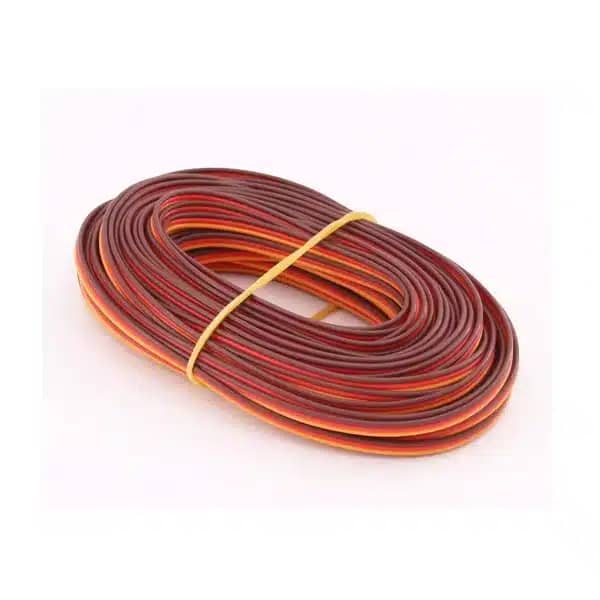 De servo draad van 5 meter in de kleuren rood, bruin en oranje is ideaal voor het verlengen of repareren van servo-aansluitingen.