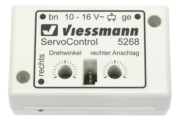 Module voor het eenvoudig en voordelig aansturen van standaard servo’s voor wissels en andere accessoires. Aanstuurbaar via een schakelaar item 5550 of een digitale schakeldecoder item 5209 voor DCC, item 5213 voor Motorola of item 5285 voor multiprotocol, met slechts รฉรฉn kabel. Linker en rechter eindposities direct instelbaar op de module. Overbelastingsbeveiliging geรฏntegreerd.