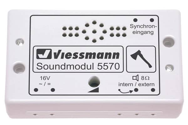 Beleef de modelspoorbaan met al uw zintuigen: De stationaire modules voegen de specifieke geluiden toe aan de geanimeerde wereld. Set compleet met module en geïntegreerde luidspreker en aansluiting voor externe luidspreker. Het volume is natuurlijk regelbaar. Bedrijfsspanning: 14 – 16 V AC/DC. De geluidsmodule heeft een stuuringang voor bewegingssynchrone geluiden. Geschikt voor: Wood choper item 1515.