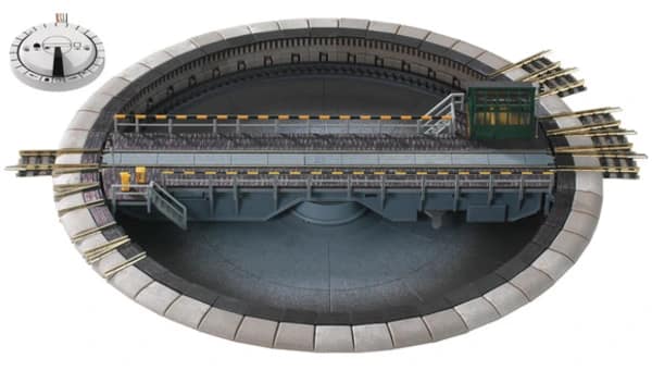 De Fleischmann 9152 is een elektrisch aangedreven draaischijf met individueel schakelbare spooruitgangen. Meer details hier.