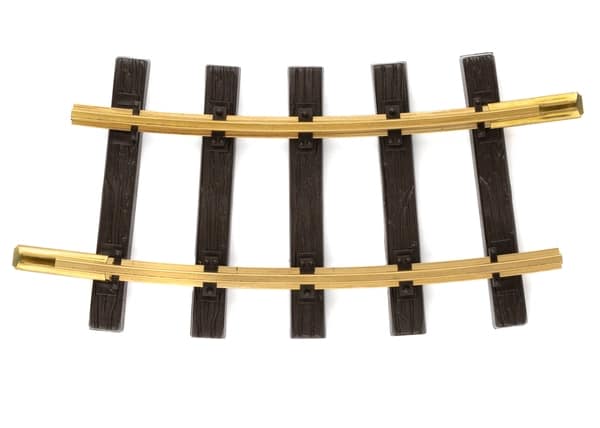 Das gebogene Gleis im Radius R1, 15° ist halb so lang wie das gebogene Gleis R1, 30° (LGB 11000). Nur für Erwachsene.