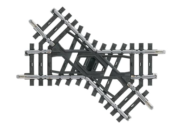 Kreuzungswinkel 45°. Länge der Gleise 90 mm. Nur für Erwachsene.
