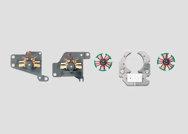 Zum Umrüsten von vielen Märklin-H0-Lokomotiven mit Scheibenkollektor-Motor großer Bauart auf den fünfpoligen Hochleistungsmotor. Bestehend aus Hochleistungsmotor in verschiedenen Bauformen und Einbaumaterial. Nur für Erwachsene.