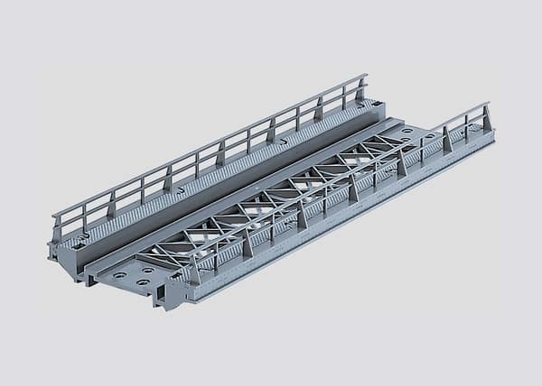 Zur Aufnahme von Kunststoff- oder Metallgleisen. 3 Klammern zur Befestigung der K-Gleise. Länge 180 mm. Nur für Erwachsene.