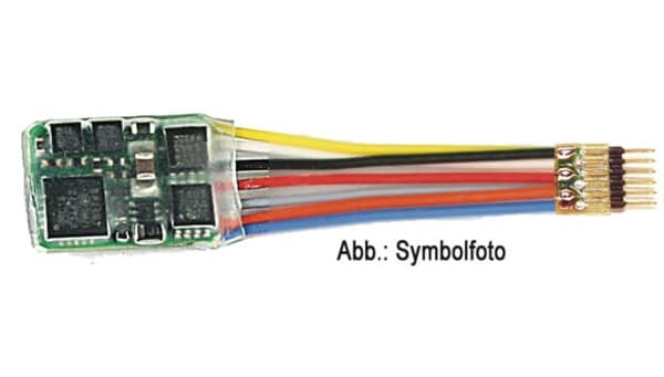 De Roco 685504 DCC-Decoder 6-polig bedraad biedt een betrouwbare digitale oplossing met een korte kabel van 35mm.